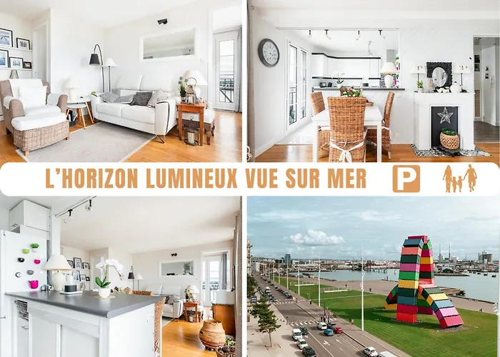 The 50 m² L'Horizon Lumineux Vue Sur Mer Au 5Ieme Etage Avec Ascenseur Le Havre apartment lies in the Perret district of Le Havre and offers swift access to the Notre-Dame Cathedral, which is just a 6-minute walk away.